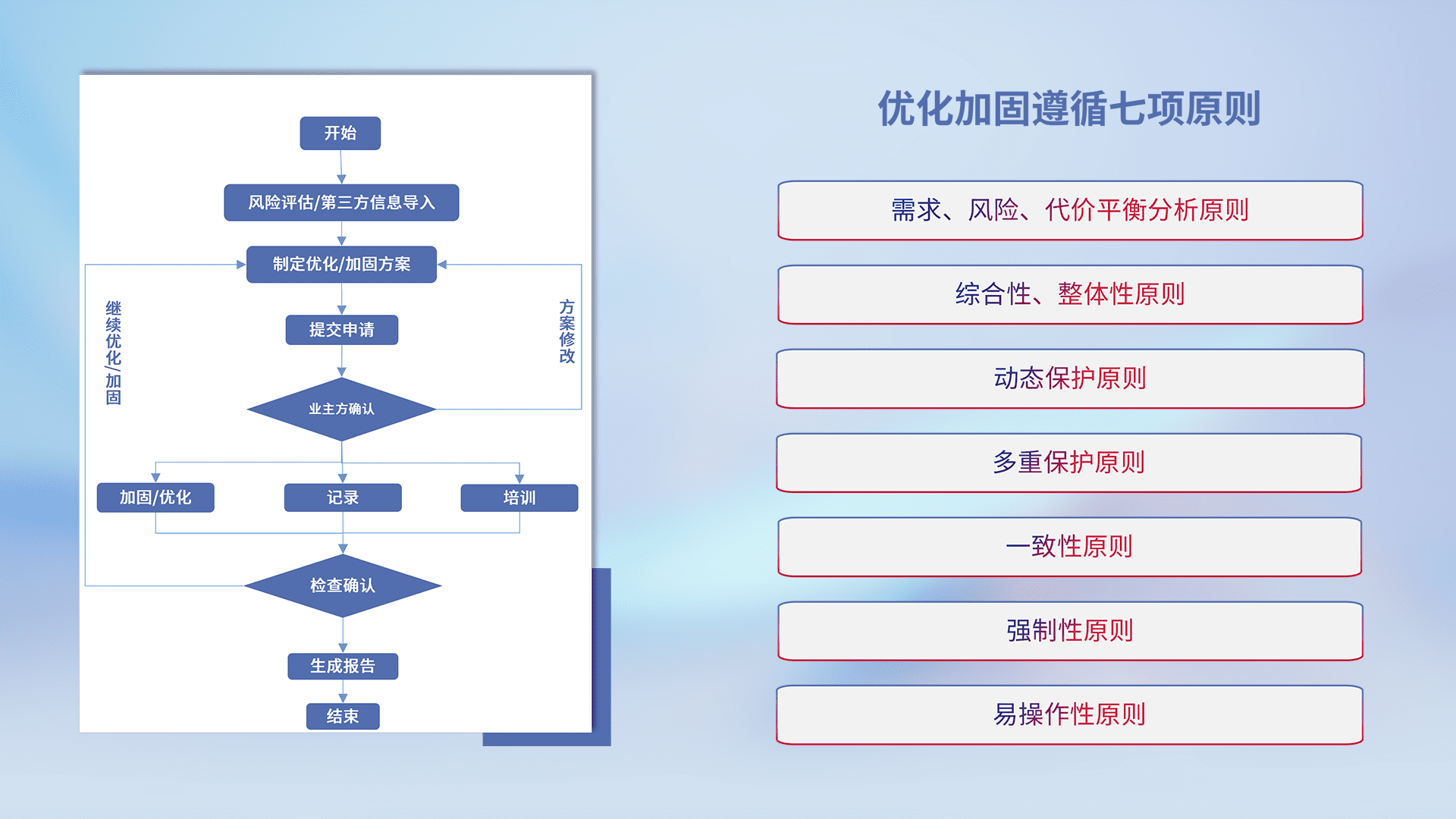 最大程度利用现有资产,,,对评估发现的问题进行封堵与整改,,,防止漏洞被利用,,提升整体网络安全性,,,为客户带来高标准的优化加固服务。。